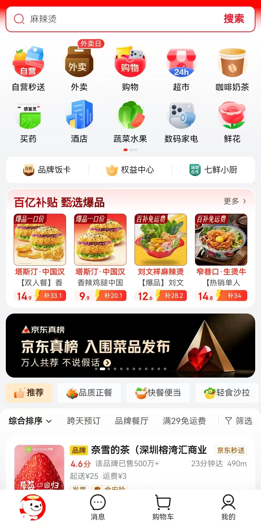 值得一提的是,京东外卖APP首页还有一个“购物”频道,给用户提供了电商购物的入口,满足用户的多样化消费需求。